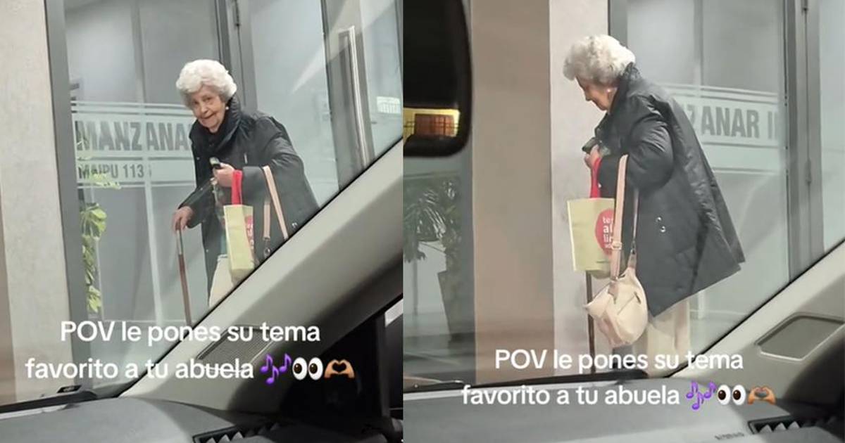 En las imágenes se ve como, al escuchar los primeros acordes, la mujer no dudó ni un momento y, con bastón en mano, cargando sus bolsas, comenzó a bailar mientras en su expresión había una sonrisa.