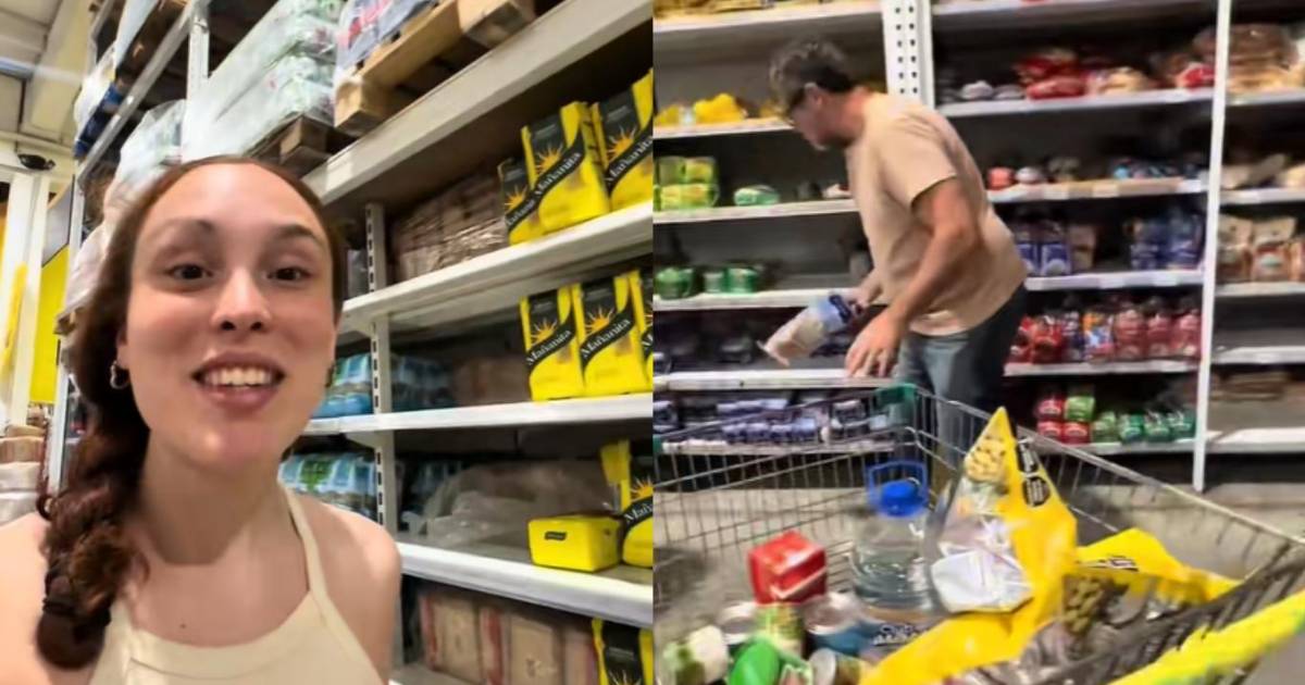 Con el carrito cerca y los pasillos llenos de productos, la joven inicia una especie de prueba de generosidad paterna que rápidamente capta la atención de los usuarios.