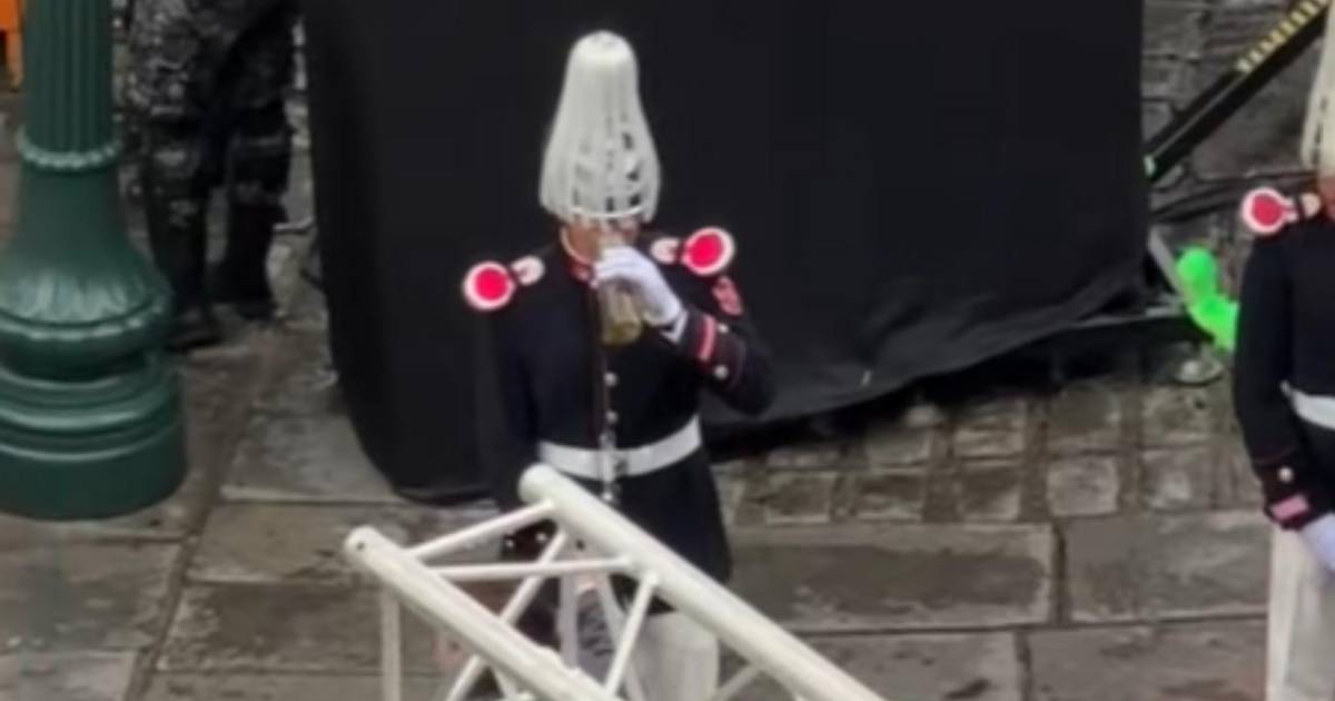 Una mujer se acercó a los soldados que permanecían firmes bajo la lluvia y les ofreció algo caliente para tomar, un gesto que reflejó la solidaridad y el respeto hacia quienes cumplían con su deber.