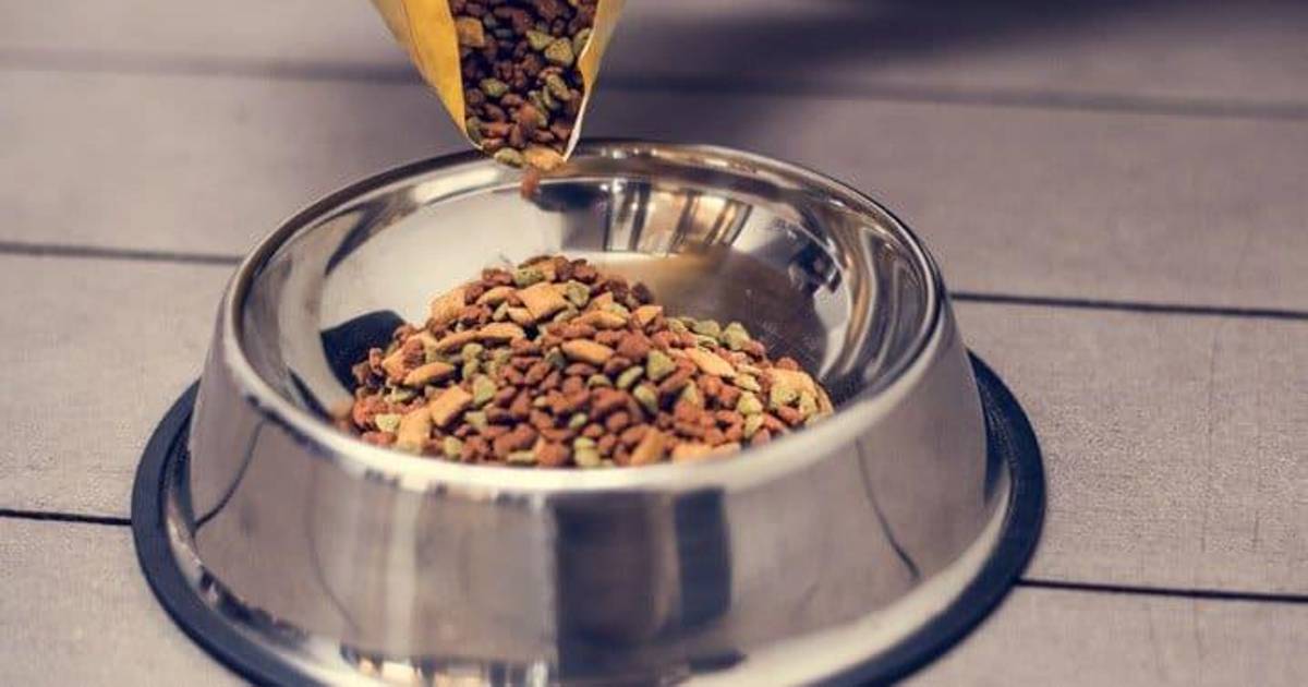 Cuatro perritos junto a una pequeña tortuga se muestran organizados a la hora de alimentarse