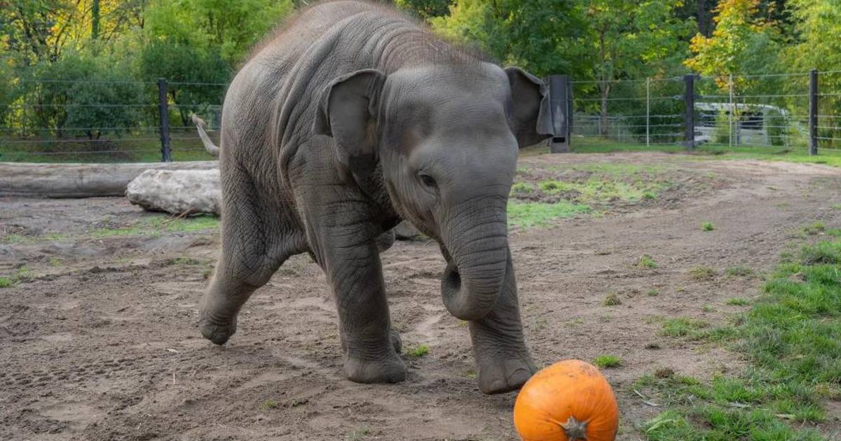 La elefanta bebé tiene ocho meses, es de origen asiático identificada como Tula-Tu y tiene un peso de 351,5 kilogramos. En el lugar se acostumbra a que los elefantes aplasten las calabazas que suelen tener gran tamaño, sin embargo los cuidadores le dieron una hortaliza de bajo peso para que Tula-Tu pueda practicar.