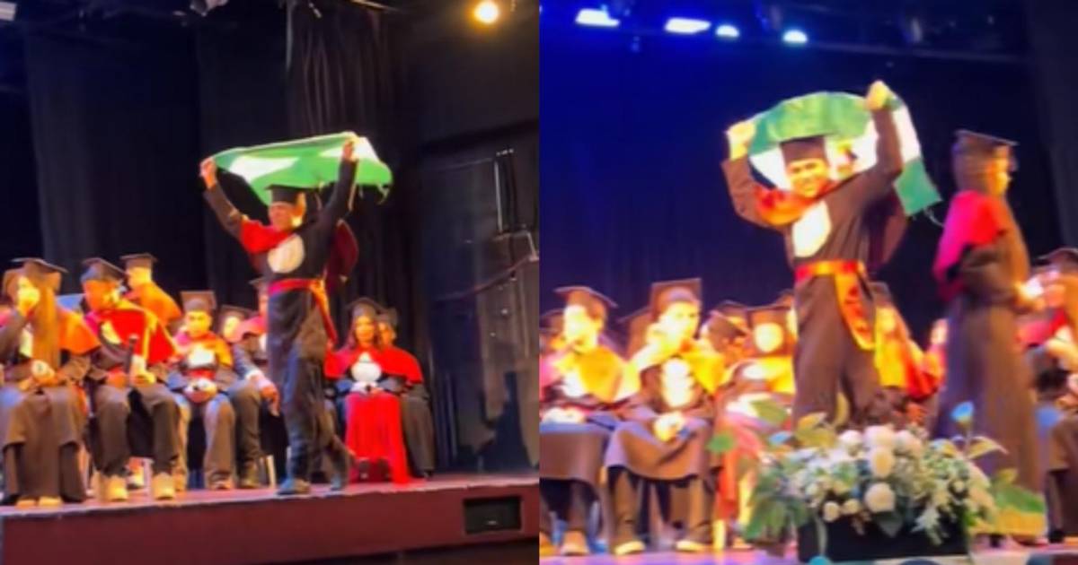Video: Estudiante boliviano en el exterior honra a su tierra natal con bandera en ceremonia de graduación