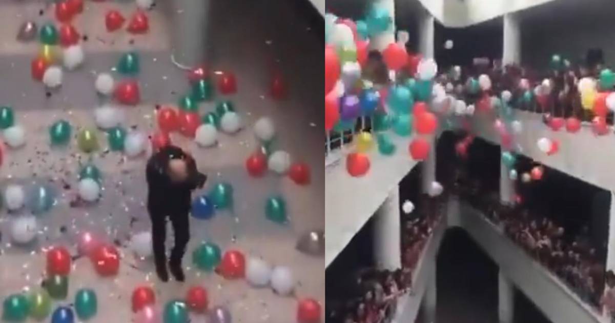Tras meses de lucha contra el cáncer, un profesor volvió a dar clases y fue recibido con una inolvidable sorpresa organizada por sus estudiantes, quienes lo llenaron de aplausos, globos y una lluvia de papelitos desde los pisos superiores. El hecho ocurrió en Turquía.