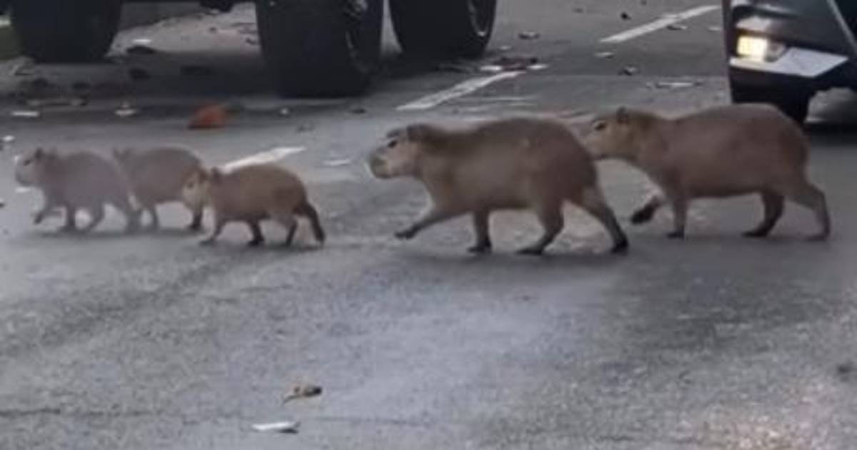 Un video compartido en Instagram, capturó el momento en el que un grupo de capiguaras caminaba sobre una avenida transitada de vehículos