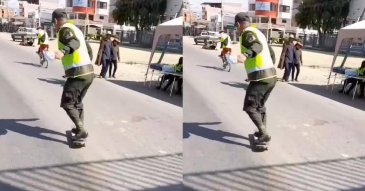 Un policía protagonizó una asombrosa escena al tomar una patineta en plena vía pública y deslizarse con total naturalidad. El momento ha captado la atención de los internautas y rompió con la seriedad habitual de su labor.