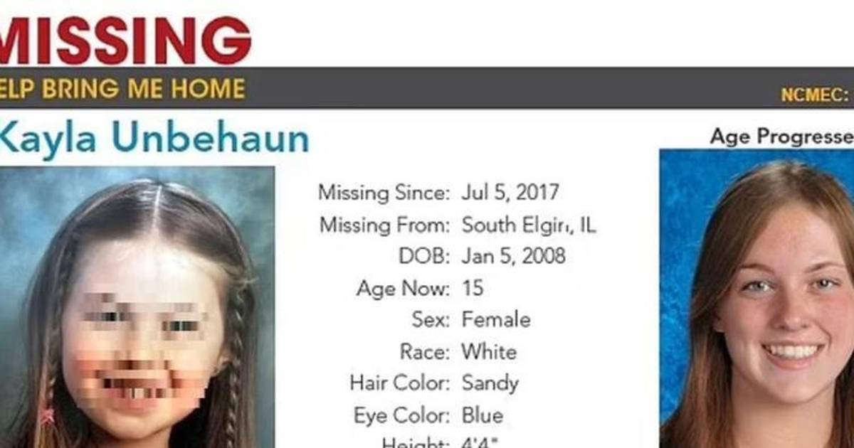 Kayla tenía 9 años cuando fue secuestrada por su madre, Heather Unbehaun, quien había perdido su custodia, afirmó el Centro Nacional para Niños Desaparecidos y Explotados.